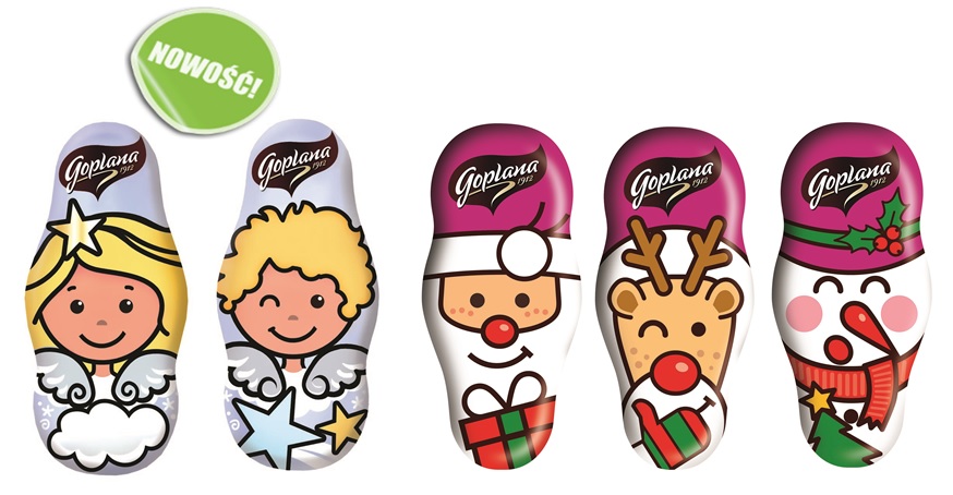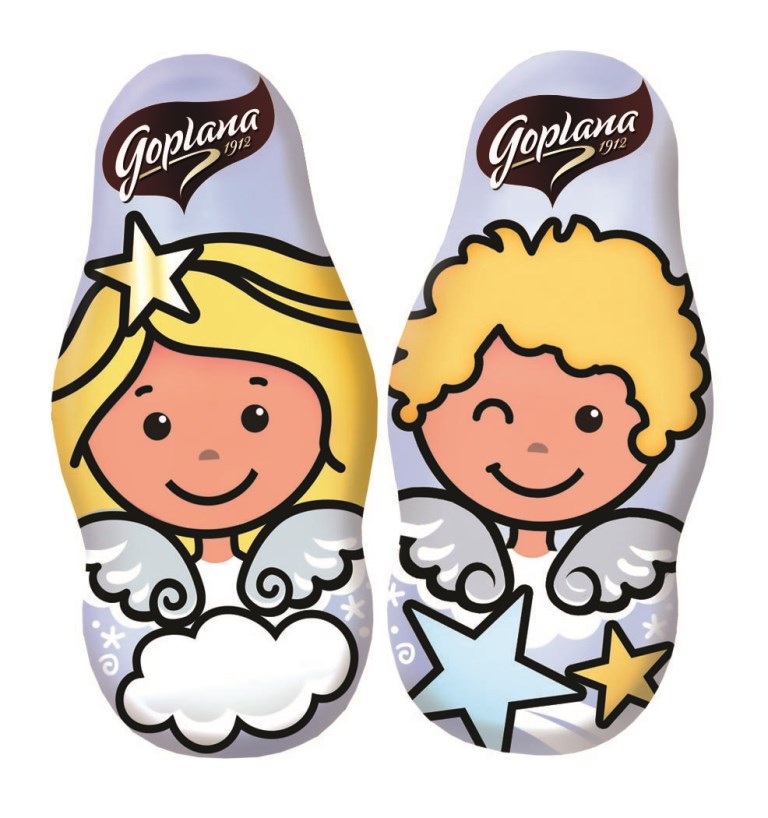 Aniołki Goplana to nowe i jedyne na rynku świąteczne figurki z marcepanem w czekoladzie, dostępne z graficznymi motywami aniołków. W tym roku dołączyły do bestsellerowej kolekcji 9 figurek o smaku karmelowym w czekoladzie (z wizerunkami św. Mikołaja, renifera i bałwanka), które od lat są rynkowym numerem 1 w swojej kategorii. Idealny słodki drobiazg do paczki dla dzieci, ozdoba świątecznego stołu czy tradycyjnej choinki. Czy wiesz, że w sezonie, średnio co sekundę sprzedawane są 4 figurki świąteczne od Goplany?