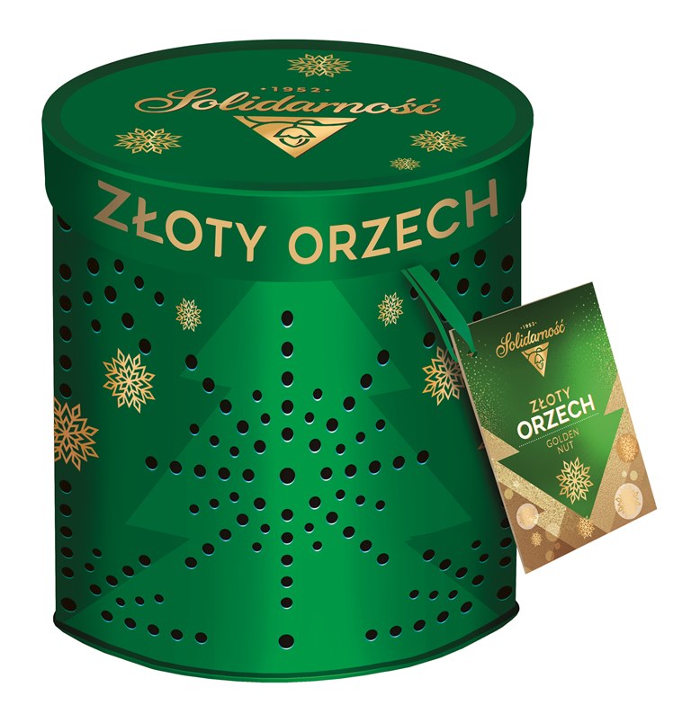 Praliny Złota Wiśnia, Złoty Orzech i Śliwka Nałęczowska Solidarności są dostępne w edycji limitowanej w unikalnych puszkach-lampionach z delikatnym, ażurowym motywem. Tworzą spójną kolekcję trzech wzorów, opatrzonych bilecikiem z miejscem na personalizowaną dedykację. Puszki mogą stać się pięknym elementem dekoracji wnętrza. Wypełnione światełkami led lub świeczką zyskają drugie życie, jako świąteczny lampion.