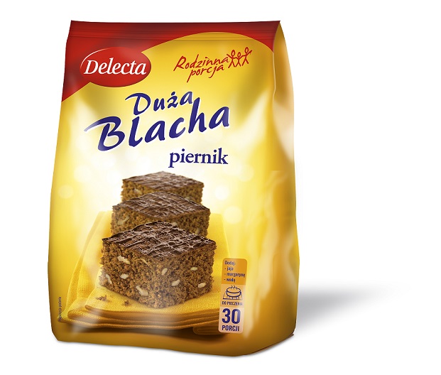 Piernik do samodzielnego wypieku z linii Duża Blacha Delecta można przygotować w parę chwil, dodając tylko podstawowe składniki ? jaja, margarynę i wodę. Rodzinna porcja na dużą foremkę zaspokoi apetyt wszystkich zaproszonych gości. Z jednego opakowania produktu otrzymasz aż 30 kawałków puszystego piernika!